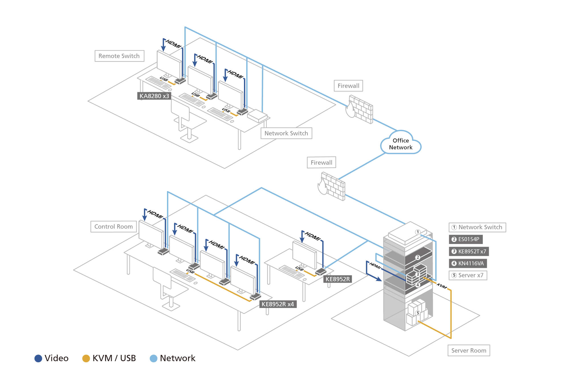 La seguridad y la resiliencia son vitales en las operaciones gubernamentales. El despliegue de KE6900AiT & KE6940AiT permite atravesar dos segmentos de red separados, lo que permite ampliar el acceso a los sistemas informáticos de forma remota a través de consolas USB por intranet e Internet. Las operaciones pueden grabarse paso a paso para mantener la máxima transparencia y garantizar tanto la seguridad como la rendición de cuentas.