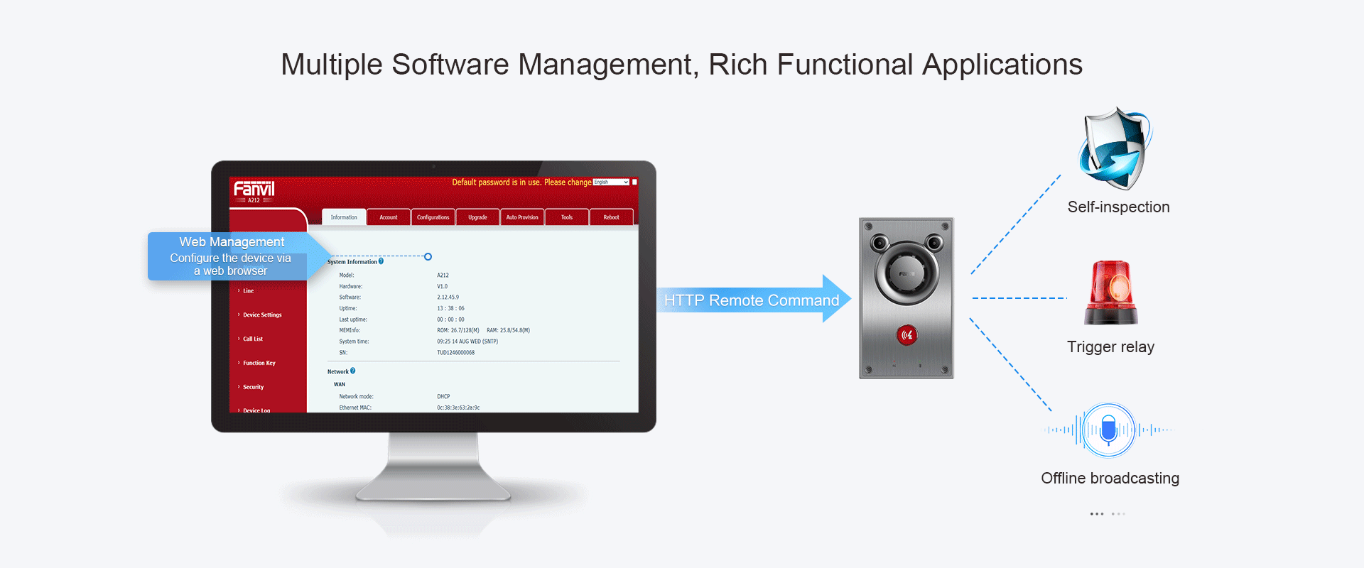 - Función de autocomprobación: autocomprobación de bucle de voz, simplifica el mantenimiento, reduce los costos.