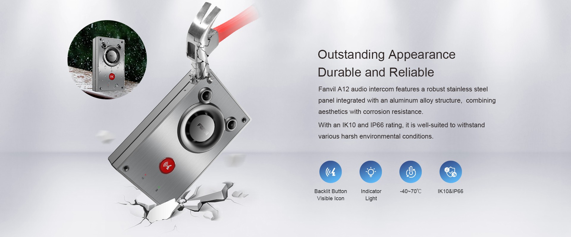 - Hermoso y duradero: panel de acero inoxidable con estructura de aleación de aluminio, hermosa resistencia a la corrosión, hasta el estándar antidisturbios IK10.