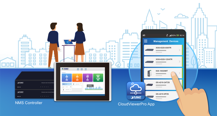 El sistema de gestión de red universal (UNI-NMS) de PLANET y la aplicación CloudViewerPro ayudan al personal de TI a gestionar de forma remota todos los dispositivos de red y a supervisar el estado de funcionamiento del IXT-900-2X1T. Estos sistemas están diseñados tanto para empresas como para industrias en las que las implementaciones del IXT-900-2X1T pueden realizarse de forma remota. Esto permite detectar errores o condiciones defectuosas sin tener que desplazarse al lugar real. Con UNI-NMS o la aplicación CloudViewerPro, ahora es posible gestionar de forma rápida y eficiente todo tipo de empresas desde una única plataforma.
