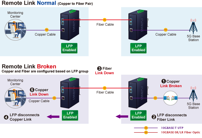Link Fault Pass-through es una función de red. Facilita la detección y propagación de fallas o errores de enlace de un dispositivo de red a otro. Ayuda a mantener la confiabilidad de la red y minimiza el tiempo de inactividad al permitir que los dispositivos respondan dinámicamente a las fallas de enlace. Link Fault Pass-through mejora la detección de fallas y permite procesos de resolución y solución de problemas más rápidos.