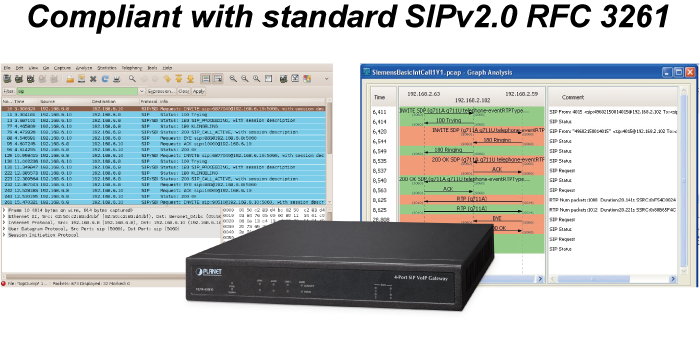 El VGW-420FO es compatible con el protocolo de inicio de sesión 2.0 (RFC 3261) para una fácil integración con el sistema general de voz sobre IP. El VGW-420FO es capaz de interoperar ampliamente con los equipos proporcionados por los proveedores de infraestructura VoIP, lo que les permite ofrecer a sus clientes mejores servicios de intercambio multimedia.