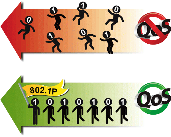El VGW-420FO ofrece sin esfuerzo una calidad de voz de peaje segura mediante el uso de QoS (calidad de servicio) 802.1p de vanguardia, etiquetado VLAN 802.1Q y tecnología IP TOS (tipo de servicio). Usando voz y datos, VLAN puede separar fácilmente los datos y la voz, manteniendo así la mejor calidad.
