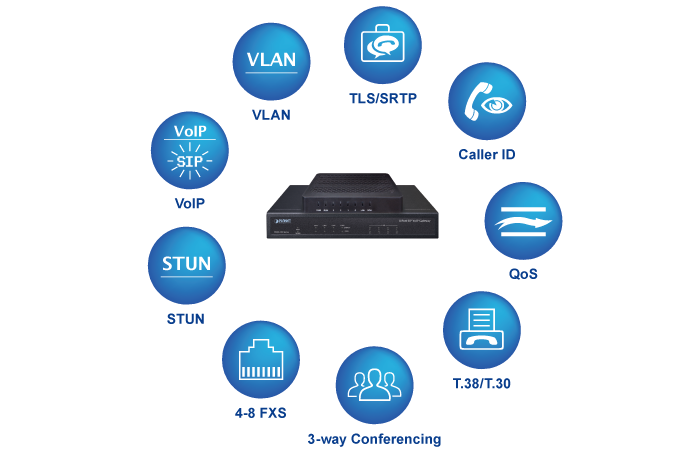 La puerta de enlace VoIP SIP de 4 puertos de clase empresarial PLANET VGW-420FS proporciona una mayor flexibilidad durante la migración a las comunicaciones unificadas al admitir los dispositivos analógicos tradicionales. Estos dispositivos incluyen teléfonos analógicos, máquinas de fax, módems, sistemas de correo de voz y altavoces.
