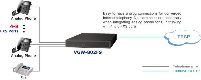 La serie PLANET VGW es fácil de usar para todo tipo de negocios. El VGW-420FS ofrece comunicaciones de voz de calidad y datos de fax en tiempo real a través de redes IP y no necesita recursos humanos para implementar una red VoIP. Con la arquitectura SIP optimizada, PLANET VGW-420FS es la opción ideal para el chat de voz proxy P2P/SIP (IP PBX) y la solución de ahorro de costos ITSP.