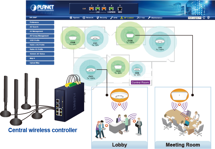 El ICG-2515FW-NR proporciona una gestión centralizada de la serie PLANET Smart AP a través de una interfaz gráfica de usuario web fácil de usar. Es fácil configurar el punto de acceso para la SSID inalámbrica, la banda de radio y las configuraciones de seguridad. Con un proceso de configuración de cuatro pasos, los perfiles inalámbricos para diferentes propósitos se pueden entregar simultáneamente a varios puntos de acceso o grupos de puntos de acceso para minimizar el tiempo, el esfuerzo y el costo de implementación.
