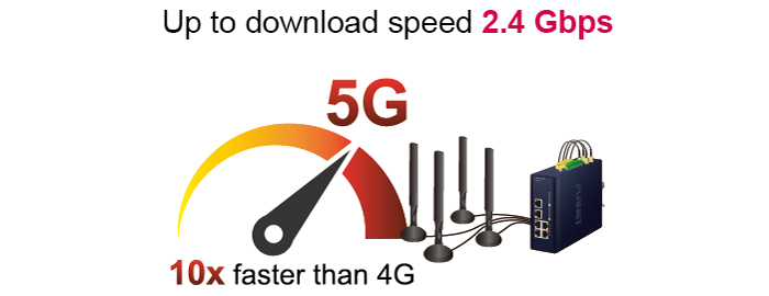 PLANET ICG-2515FW-NR es una puerta de enlace celular inalámbrica de grado industrial para aplicaciones móviles exigentes, M2M (máquina a máquina) e implementaciones de IoT. Actualizado a la última tecnología celular de 5G NR (nueva radio), el ICG-2515FW-NR puede proporcionar acceso de banda ancha ultrarrápido con red celular 5G. El ICG-2515FW-NR también cuenta con cuatro puertos Ethernet (3 LAN y 1 LAN/WAN), un puerto de fibra (LAN/WAN), capacidad Wi-Fi IEEE 11ax, puerto serial (RS485), interfaces DI y DO y tecnología VPN, todo en una carcasa de metal compacta pero resistente. Establece una conexión celular rápida entre dispositivos equipados con puerto serial y Ethernet. El ICG-2515FW-NR es una solución integrada 5G NR y Wi-Fi 6 para automatización industrial, fábrica digital y otras aplicaciones industriales.