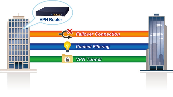 El VR-300P proporciona seguridad y privacidad de datos completas para acceder e intercambiar los datos más confidenciales, función VPN IPSec incorporada con cifrado DES/3DES/AES y autenticación MD5/SHA-1/SHA-256/SHA-384/SHA-512, y mecanismo de servidor GRE, SSL, PPTP y L2TP. La capacidad VPN completa del VR-300P hace que la conexión sea más segura, más flexible y más eficaz.