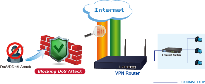El VR-300W6 y el VR-300PW6 cuentan con un firewall SPI (inspección de paquetes con estado) integrado y funciones de mitigación de ataques DoS/DDoS que proporcionan una alta eficiencia y una amplia protección para su red. Por lo tanto, las funciones de servidor virtual y DMZ pueden permitirle configurar servidores en la Intranet y seguir brindando servicios a los usuarios de Internet.