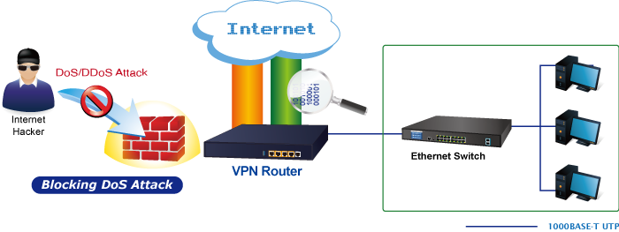 El firewall SPI (inspección de paquetes con estado) incorporado del VR-300 y las funciones de mitigación de ataques DoS/DDoS brindan alta eficiencia y amplia protección para su red. Por lo tanto, las funciones de servidor virtual y DMZ pueden permitirle configurar servidores en la Intranet y aún así brindar servicios a los usuarios de Internet.
