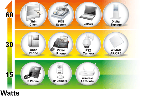 El POE-172S, al trabajar con conmutadores o inyectores Ultra PoE PLANET 802.3bt, ofrece más aplicaciones PoE para dispositivos cliente, como: