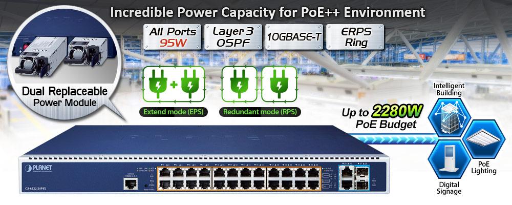 90~95 vatios 802.3bt PoE++ y gestión avanzada del modo de salida de alimentación PoE