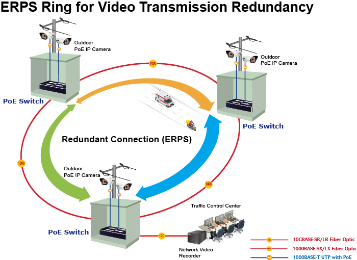 El GS-4210-16UP8T4X admite la tecnología de anillo redundante y cuenta con una capacidad de autorrecuperación rápida y sólida para evitar interrupciones e intrusiones externas. Incorpora tecnología avanzada ITU-T G.8032 ERPS (Ethernet Ring Protection Switching), protocolo Spanning Tree (802.1s MSTP) en la red del cliente para mejorar la confiabilidad del sistema y el tiempo de actividad en varios entornos.