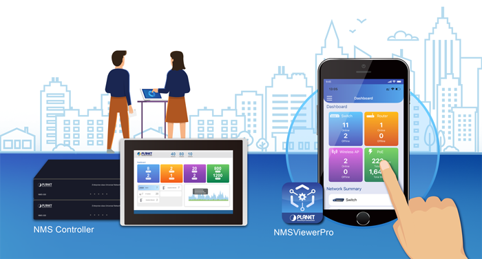 Las aplicaciones UNI-NMS, NMSViewerPro y CloudViewerPro del Sistema de gestión de red universal de PLANET ayudan al personal de TI a gestionar de forma remota todos los dispositivos de red y a supervisar el estado operativo de los PD. Por lo tanto, están diseñadas tanto para empresas como para industrias donde las implementaciones de PD pueden ser lo más remotas posible, sin tener que ir a la ubicación real una vez que se detecta un error o una condición defectuosa. Con las aplicaciones UNI-NMS, NMSViewerPro o CloudViewerPro, ahora se pueden gestionar todo tipo de empresas de forma rápida y eficiente desde una plataforma.