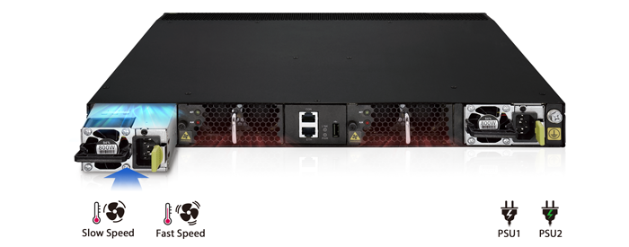 Al optimizar la eficiencia de uso de energía, el conmutador reduce el consumo de energía y cumple con los estándares ambientales. Los ventiladores inteligentes ajustan la velocidad en función de la temperatura y la carga de trabajo, lo que garantiza una refrigeración eficiente con un uso mínimo de energía y ruido.
