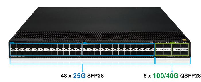 El conmutador admite configuraciones de puerto de alta densidad, como puertos de 25G, 40G y 100G, lo que facilita la transmisión de datos a gran escala y las aplicaciones de gran ancho de banda.