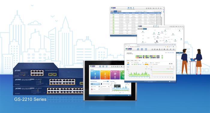 La serie de conmutadores inteligentes web GS-2210, conocida por funciones como QoS, agregación de enlaces, VLAN, IGMP, etc., ofrece una característica llamativa llamada NMS desarrollada por PLANET para gestionar y supervisar de forma sencilla y remota los dispositivos de red en el entorno local desde una aplicación móvil. Esta característica no solo mejora la comodidad operativa, sino que también garantiza que los usuarios tengan control en tiempo real sobre su infraestructura de red. Proporciona a los usuarios una experiencia sin igual.