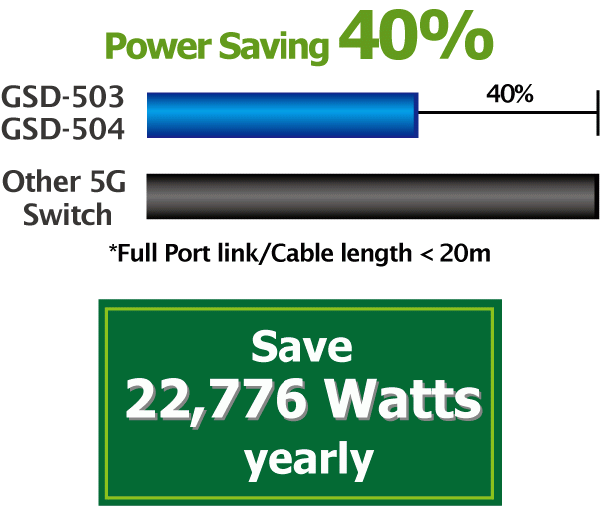 El GSD-503 incorpora dos tecnologías avanzadas de redes ecológicas y puede proporcionar ahorros de energía de hasta un 40%, pero mantiene un alto rendimiento de manera eficiente.