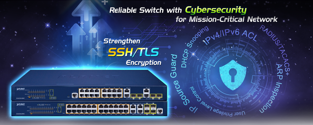 La serie GS-4210 PoE admite los protocolos SSHv2 y TLS para brindar una protección sólida contra amenazas avanzadas. Incluye una variedad de funciones de ciberseguridad como DHCP Snooping, IP Source Guard, protección de inspección ARP dinámica, control de acceso a la red basado en puertos 802.1x, administración de cuentas de usuario RADIUS y TACACS+, autenticación SNMPv3, etc. para complementarla como una solución de seguridad integral.