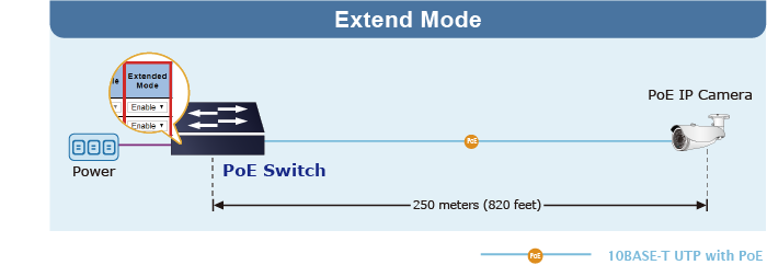 Con esta nueva característica, el BSP-115HP-5A proporciona una solución adicional para la extensión de la distancia PoE+ 802.3at, ahorrando así el costo de la instalación del cable Ethernet.